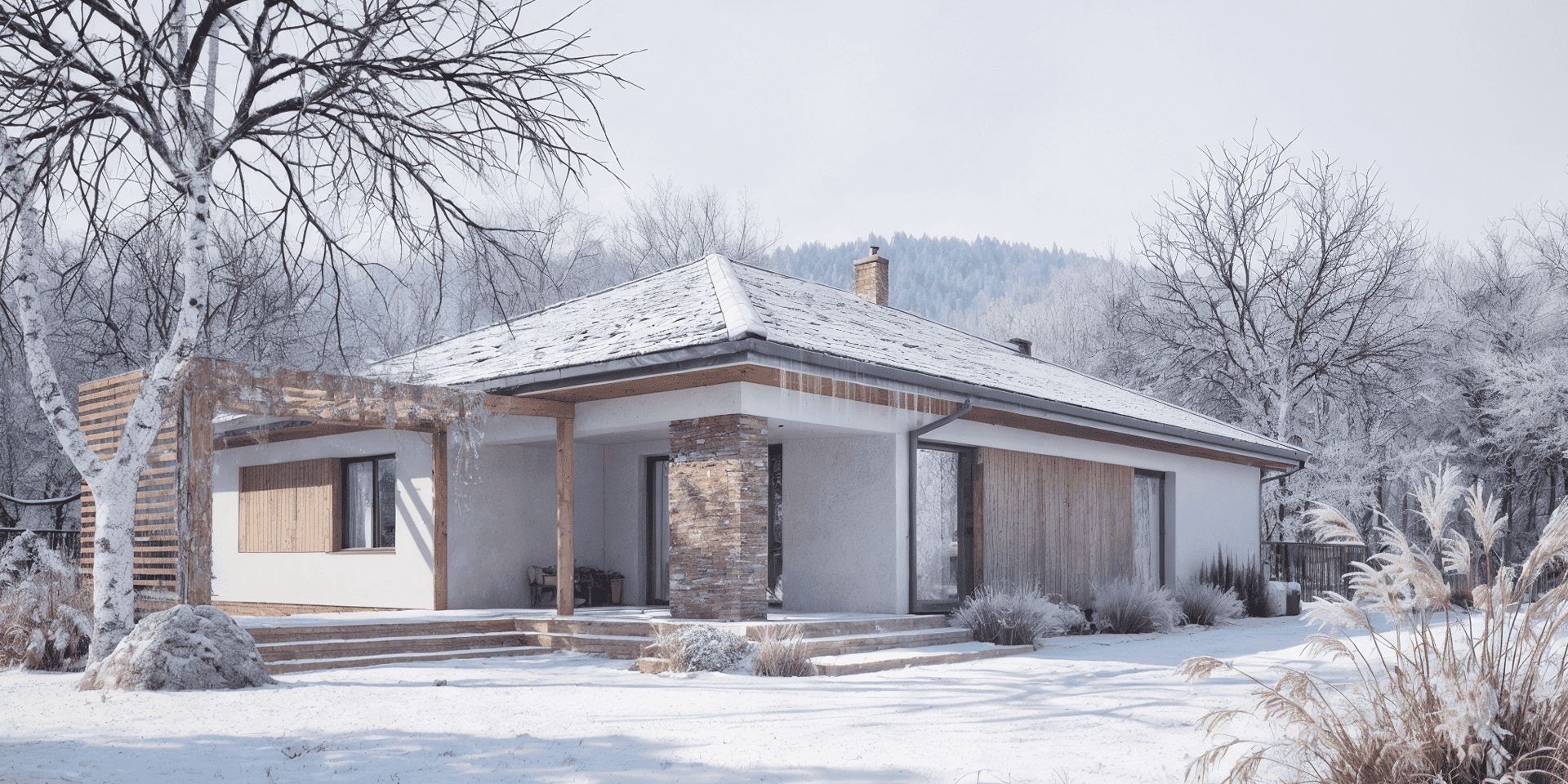 Ściany zewnętrzne: pustak ceramiczny LEIER o gr. 25cm + styropian Termo Organika o gr. 20cm + tynk.