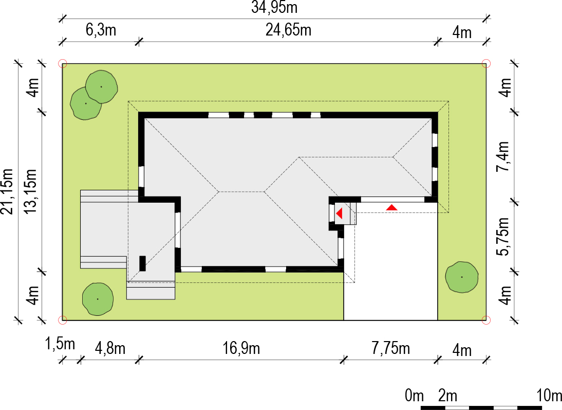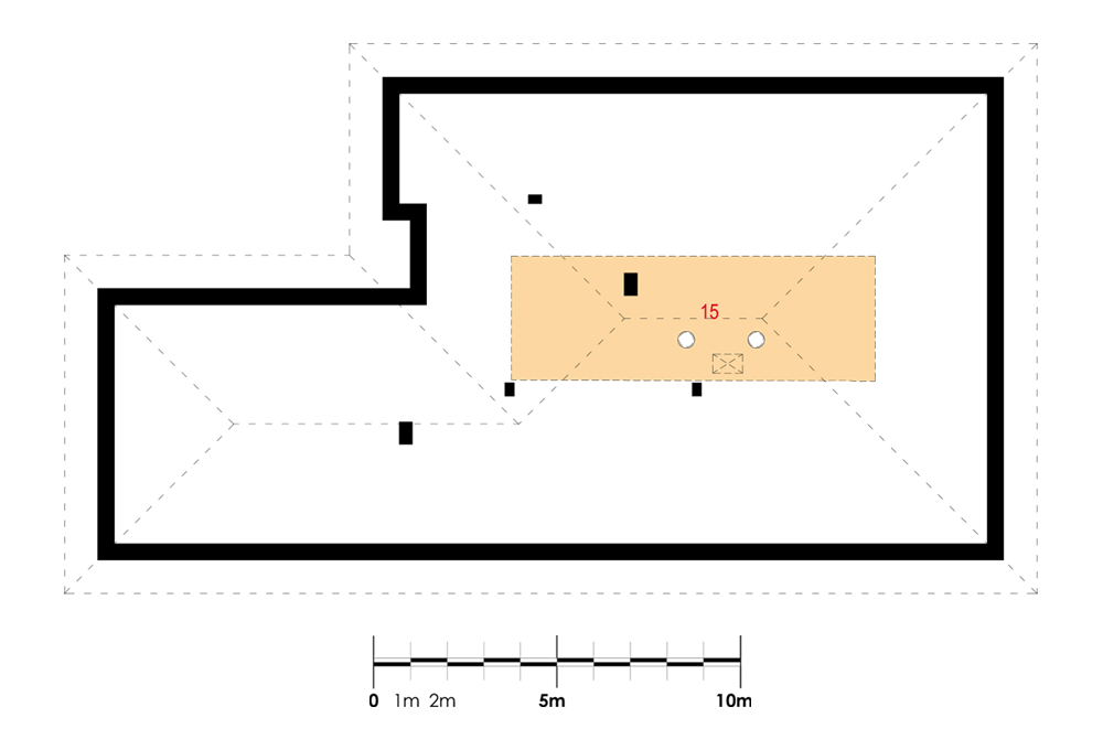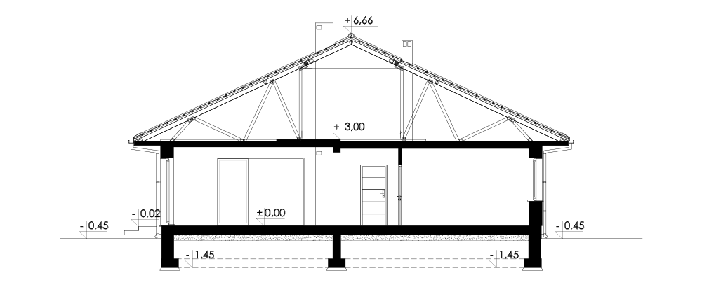 Dach: wielospadowy, konstrukcja drewniana w systemie prefabrykowanych wiązarów, pokryty dachówką ceramiczną.
