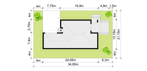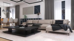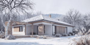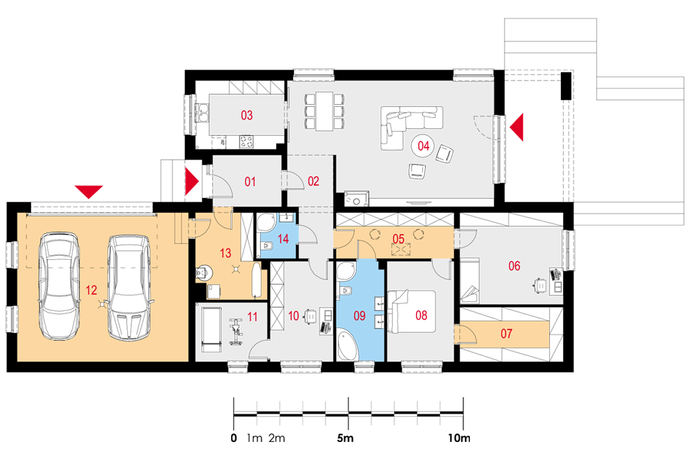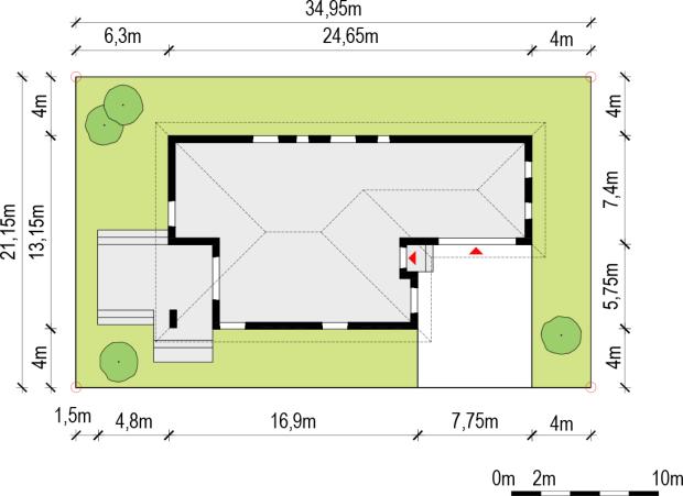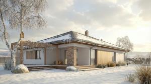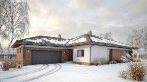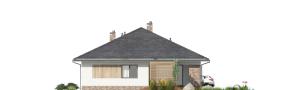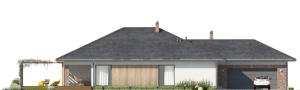 Duży, prosty dom jednorodzinny, wolnostojący, niepodpiwniczony z garażem dwustanowiskowym. Bardzo przestronna strefa dzienna oraz taras z podcieniem. Idealny na wąską i długą działkę.