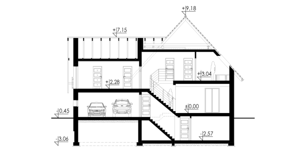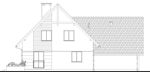 Dom jednorodzinny, wolnostojący, częściowo podpiwniczony z poddaszem użytkowym i garażem dwustanowiskowym.