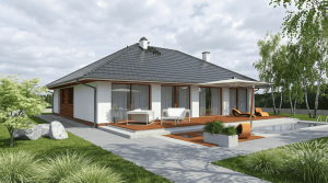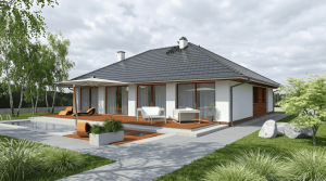 Dom jednorodzinny, wolnostojący, podpiwniczony z poddaszem nieużytkowym.